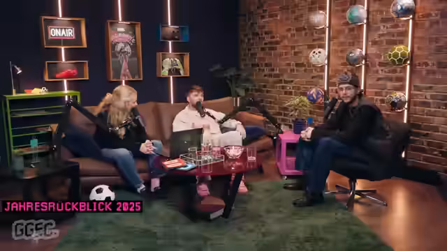 02:27:45Das Team führt ein visuelles Fußball-Minispiel am PC durch, bei dem der Chat durch Klicken auf grüne Zonen schießt. Es entsteht eine wettbewerbsfreudige Atmosphäre mit pointierten Kommentaren wie 'Link oben ist stabil!' und kritischen Ausrufen bei verpassten Chancen. Chef Strobel gewinnt schließlich mit 3:2 Punkten, während die Runde durch technische Hinweise und live Reaktionen des Chats belebt wird und in einer humorvollen Siegesfeier mündet.