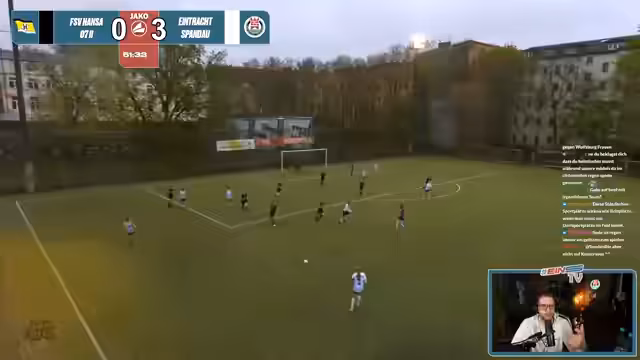 01:43:40Die zweite Halbzeit beginnt mit 3:0 für Eintracht Spandau und wird als psychologisch wichtiger Moment gesehen. Der Stream endet mit final Kommentaren zum Spielstil und den Schlussständen. Es gibt kein offizielles Endergebnis im Text, aber es wird darauf hingewiesen, dass die insgesamt sehr überlegene Leistung der Heimmannschaft zu einem verdienten Sieg führt.