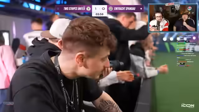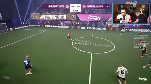 01:17:38Ein spektakuläres Ereignis ist der 'Rule Breaker', eine besondere Spielregel der Icon League. Ein Spieler von Two Stripes erhält für zwei Minuten die Fähigkeit, mit jedem Berührungspunkt ein Tor zu erzielen. Dies führt zu großer Nervosität und einer intensiven Verteidigungsleistung von Eintracht Spandau. Nach einer gelungenen Abwehr aktiviert das gegnerische Team den Rule Breaker erneut und nutzt ihn eiskalt zur Führung. In den Schlussminuten wackelt die Führung durch individuelle Fehler im Spielaufbau, was zu einem fatalen Gegentor und einem frustrierenden Ausgleich führt.