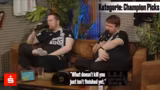 01:14:26Die Sprecher spielen verschiedene Spiele mit dem Chat, darunter 'Don't Quote Me on This', bei dem Champions durch Zitate erraten werden werden. Dabei gibt es einen Wettkampf zwischen den Sprechern und dem Chat. Es wird viel gelacht und der Spaß steht im Vordergrund. Die Sprecher interagieren stark mit dem Chat und nehmen die Vorschläge ernst.