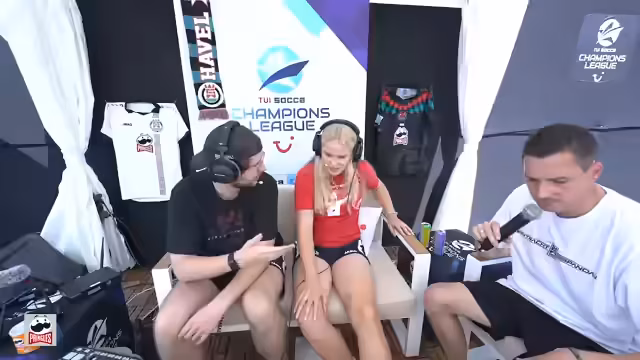 01:03:45Zwischen den spielrelevanten Inhalten gibt es viele humorvolle und abschweifende Interaktionen. Es gibt eine Diskussion über den Selfie-Zwang mit dem MVP-Pokal und eine Debatte über Sympathie, die angeblich mit blonden Haaren zusammenhängt. Ein Mini-Spiel wird veranstaltet, bei dem aus Vornamen von Spielern die Nachnamen erraten werden müssen. Dies führt zu viel Gelächter und Ablenkung vom eigentlichen Spielgeschehen. Auch die laute Umgebung und Touristen im Stadion werden thematisiert.