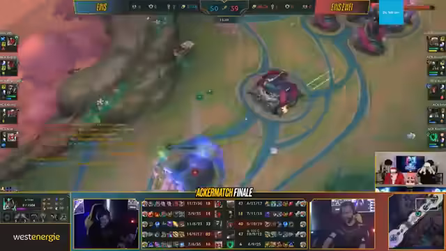 01:51:40Draven zeigt beeindruckende Resilienz, nachdem er早期 stark zurückgefallen war, und startet aggressive Plays mit Flash und Ult, um den Goldunterschied von fast 10.000 Gold zu reduzieren. Durch geschicktes Farmen, Kills und Shut-Downs – etwa durch eine Gin-Falle, die einen entscheidenden Slow auslöst – holte das Team 1.500 Gold auf. Intensive Teamfights um objectives wie den Atakan und den Herold bestimmen das mittlere Spiel, wobei die Synergie zwischen Jungler Sojo und ADC Shakur besonders auffällt. Trotz hoher Enemy-Pressure versucht Eintracht Spandau, durch gezielte Roams und Power-Evil-Flashes die Kontrolle zurückzugewinnen.