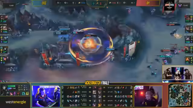 00:58:59Das Spiel endet nach über 20 Minuten mit einem Sieg des Hauptteams, aber die zweite Mannschaft zeigt starken Widerstand. Die Kommentatoren analysieren die Highlights: Sola's Schaden, Tristana's Sprungmechaniken und Xargogs opfervolle Plays. Es wird betont, dass beide Teams trotz Showmatch-Charakter volle Leistung zeigten. Der Sieger wird als Acker-Match-MVP gefeiert, und die Stimmung ist trotz der Niederlage des Zweitteams positiv.