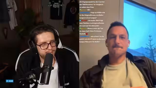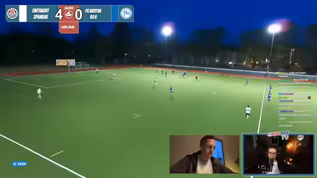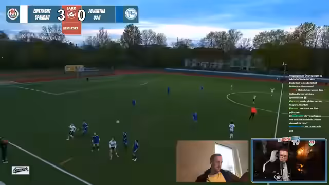 00:07:13Der Stream beginnt mit einer Wiedersehensfreude zwischen den Moderatoren Malte und Kieran. Sie planen eine Watch-Party für das Spiel Eintracht Spandau gegen FC Hertha 03 II, inklusive möglicherweise eines Champions League-Viewings ab Minute 75. Es wird eine lockere, persönliche Atmosphäre geschaffen, in der sich die Streamer gegenseitig begrüßen und das bevorstehende Spiel mit viel Vorfreude erwarten.
