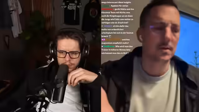 00:56:35In der Halbzeit wird intensiv über das anstehende Champions-League-Spiel diskutiert, insbesondere zwischen Bayern München und Real Madrid. Die Streamer geben ihre persönlichen Einschätzungen ab und vergleichen die Teams. Gleichzeitig wird auf die Bedeutung des Kleinfeldfußballs und der bevorstehenden EM in Albanien eingegangen, sowie auf die eigene Teilnahme daran.