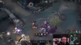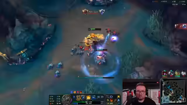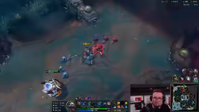 01:00:10Der Streamer beginnt ein spontanes Spiel gegen die anwesenden Coaches. Er tritt dabei in einem speziellen Modus allein gegen ein Team von vier Spielern an. Während des Spiels analysiert er die Performance und die Kommunikation des Gegnerteams und coacht die Zuschauer mit grundlegenden League-of-Legends-Strategien und Mentaltipps, wie z.B. das Führen des Chats und das Verwenden von In-Game-Funktionen.