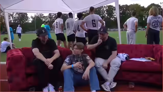 00:36:45Saira wird interviewt, der ebenfalls bereits ausgeschieden ist und seine Enttäuschung darüber äußert. Er betont, dass er gerne den ganzen Tag weitergespielt hätte und das Torwartspiel auf dem Kleinfeld liebt. Er bietet sich als Ersatz-Torwart für andere Teams an. Die Moderatoren überlegen, ob sie eine Bild-in-Bild-Funktion einrichten können, um das Fußballfeld im Stream zu zeigen. Es wird über respektlose Kommentare im Chat diskutiert, die den Namen des Moderators nicht kennen. Ein Zuschauer fragt, wer auf dem Eintracht-Kanal redet. Die Moderatoren sprechen über kaltes Bier und ihre Pläne für den Tag. Sie verabschieden sich von Saira und beobachten das laufende Spiel. Sie diskutieren über die Steuerung der Kamera und die Möglichkeit, das Spielgeschehen besser zu verfolgen.