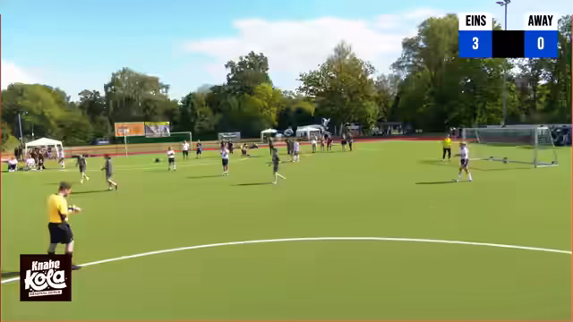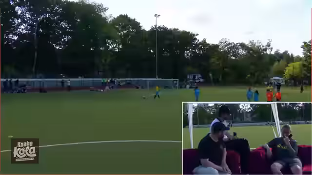 00:44:17Es wird darauf hingewiesen, dass das Team spielt und das Feld benötigt. Es wird erklärt, dass bei einem Sieg die Mannschaft weiterkommt, bei einer Niederlage ausscheidet. Es wird erwähnt, dass es sich um eine Sechsergruppe handelt. Es wird über den LOL-Talk gesprochen. Es wird gerülpst und über die lauten Knabe-Cola-Dosen gesprochen. Es wird ein Tor erzielt. Benni bringt Pommes mit. Es wird über die Maße des Feldes diskutiert. Es wird überlegt, warum die nicht einfach Spandau International singen. Es steht 0:0.