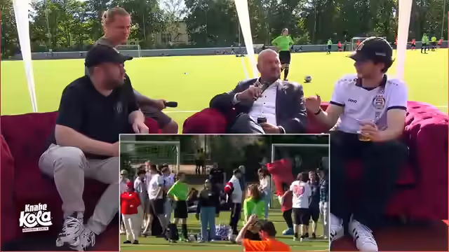 03:05:10Es gibt Sofa-Interviews mit zwei Gewinnerinnen, wobei über das Spiel und die Leistung der Spielerinnen gesprochen wird. Celine wird für ihre Dribblings gelobt, und es wird erwähnt, dass die Gegnerinnen am nächsten Tag wieder ein Punktspiel haben. Es wird über den Alkoholkonsum während des Spiels gescherzt. Die Spielerinnen laden die Zuschauer ein, ihre Spiele auf Instagram und Fußball.de zu verfolgen. Es wird aus dem Pokal getrunken, und Kevin Westphal wird mit Bier übergossen. Es gibt den Versuch, Spielerinnen für das Team zu kaufen. Es wird diskutiert, ob das Turnier ernst gemeint war oder nur zum Spaß. Nina wird für ihre Leistung gelobt, und es wird auf Instagram verwiesen. Es wird über die Sonne und den Gewinn des Turniers gesprochen. Es folgt eine Diskussion über Bechamel-Soße, bei der die Spielerinnen ihr Unwissen darüber gestehen.