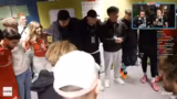 00:40:25Als symbolische Geste für den erhofften ersten Sieg präsentiert Kieran Fan-T-Shirts mit dem Konterfei von Hanno. Es wird beschlossen, diese Trikote in der ersten Halbzeit zu tragen, um ein positives Zeichen zu setzen und eine mögliche Generationenfluch zu brechen. Dieser symbolische Akt unterstreicht den hohen Stellenwert des Spiels und die Fan-Identität. Die Begeisterung über dieses Event ist im Chat und bei den Moderatoren spürbar.