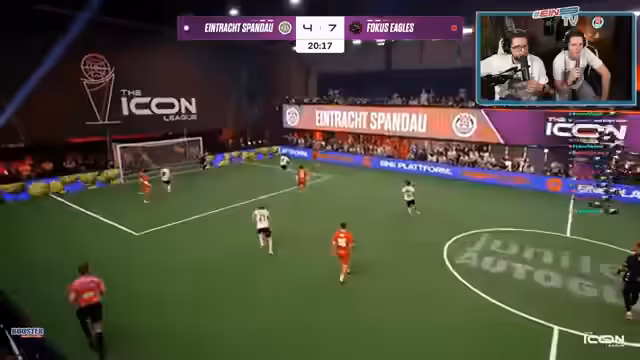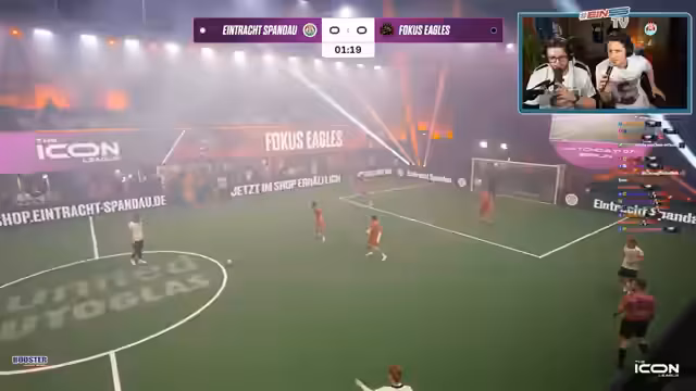 01:19:55Fokus Eagles zeigt sich als das technisch und taktisch überlegene Team. Sie agieren sehr organisiert und nutzen ihre schnellen Angriffe erfolgreich, um auf 3:1 zu erhöhen. Die Tore der Eagles, darunter ein weiteres Traumtor, zeigen ihre individuelle Klasse. Spandau wirkt im Vergleich chancenlos und kann nur selten gefährlich werden. Die Streamer erkennen die spielerische Überlegenheit der Eagles, sind aber frustriert über die eigene mangelnde Chancenverwertung und defensive Schwächen.
