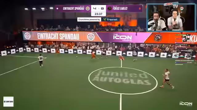 Bei einem Icon-League-Spieltag traf Eintracht Spandau auf den bis dahun ungeschlagenen Tabellenführer, die Fokus Eagles. Für Spandau stand der erste Sieg im Fokus, was durch das Tragen spezieller Fan-Trikote symbolisiert wurde. Die Eagles, als spielerisch überlegen eingestuft, nutzten ihre schnellen Angriffe und erzielten mehrere sehenswerte Tore. Spandau konnte nur zeitgleich mithalten und blieb letztendlich mit 4:7 chancenlos, was die eigenen Defizienze in Chancenverwertung und Defensive offenbarte.