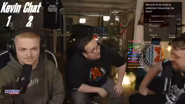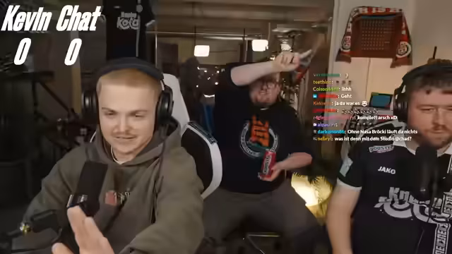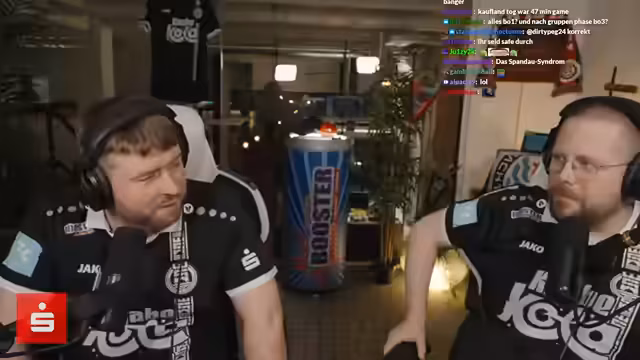 00:12:01Der Stream zur Fanmeile zur Prime League beginnt. Der geplante Aufbau im Stadion scheitert technisch, weshalb auf ein improvisiertes Studio-Setup ausgewichen werden muss. Obwohl die Technik kompliziert und nicht ganz wie gewünscht funktioniert, wird versichert, dass die Qualität der Übertragung für die Zuschauer nicht leidet. Die Streamer bedanken sich bei den Zuschauern und einemRaider namens Genux und kündigen den heutigen Plan an: die Analyse der Matches gegen Team Orange Gaming und Kaufland Hangry Nights.