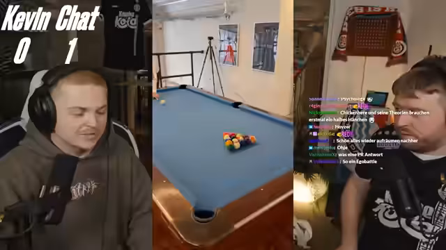 01:46:19Das Quiz erreicht seinen Höhepunkt mit einer Frage zur richtigen Kugel beim Billard. Nach anfänglichem technischem Chaos und der Fehlkonfiguration der Antwortmöglichkeiten kommt es zu einem Eklat, bei dem der Chat und die Streamer auf eine Manipulation tippen. Der Streit um die richtige Antwort eskaliert, und Adrian gewinnt durch eine clevere Analyse die Runde, was zu einem Unentschieden und einem versprochenen Tiebreaker für das nächste Mal führt.
