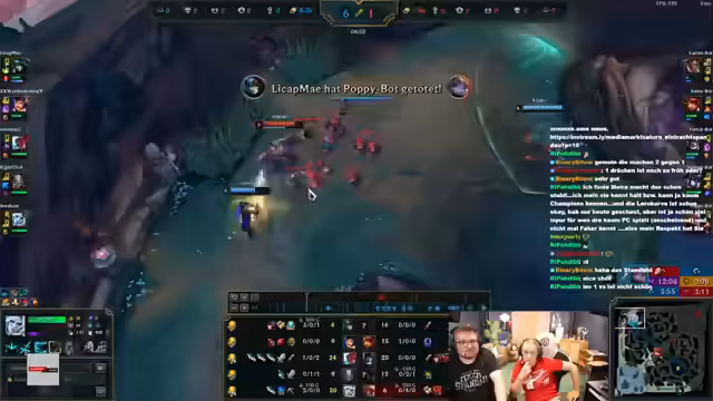 01:08:22Während der Auswahl von Garen und seinem Poolparty-Skin wird eine längere Diskussion über Skins geführt. Meira äußert ihre Enttäuschung über die fehlenden Kraken bei der Krakenpriesterin, was zu einem spielerischen und wiederholten Riot-Aufruf führt: Sie wünscht sich einen Champion, der Kakerlaken werfen kann, was zu einem Running Gag im Stream wird. Die Kosten und der Unterschied zwischen einfachen Premium- und hochwertigen Skins werden ebenfalls erklärt.