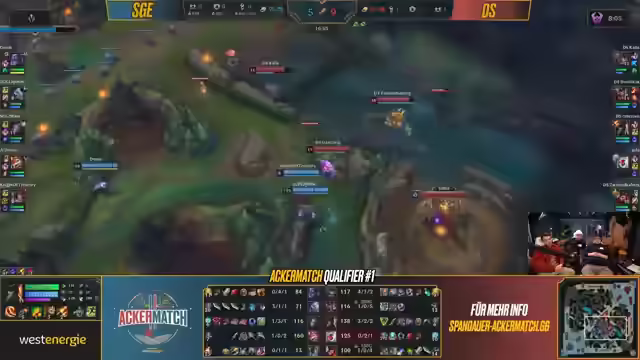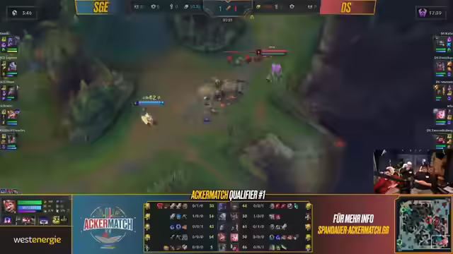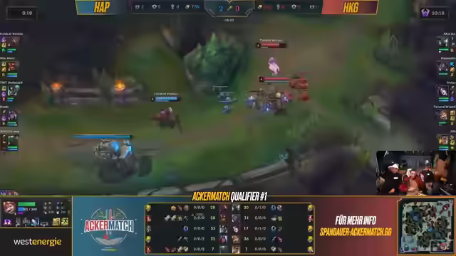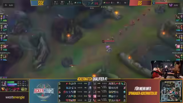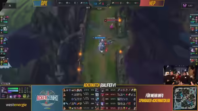 Im ersten Qualifier der League of Legends Ackermatch Turnierserie kämpften Teams um Punkte für das Online-Finale, dessen Sieger gegen Eintracht Spandau antritt. Eine USB-Lüfter Challenge mit Westenergie-Beteiligung bot zusätzliche Unterhaltung. Analysen der Spiele und Teamdynamiken rundeten die Übertragung ab.