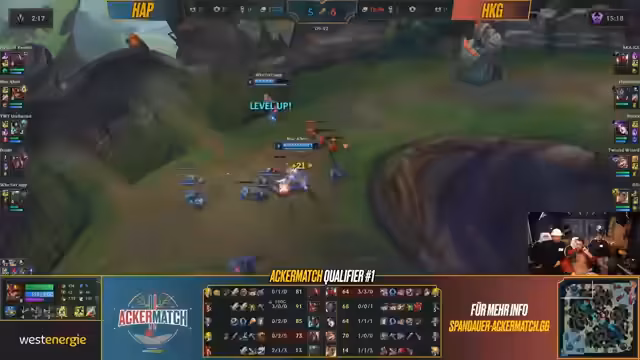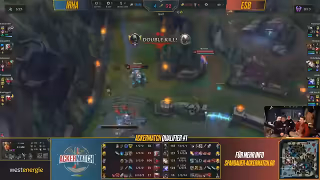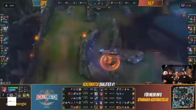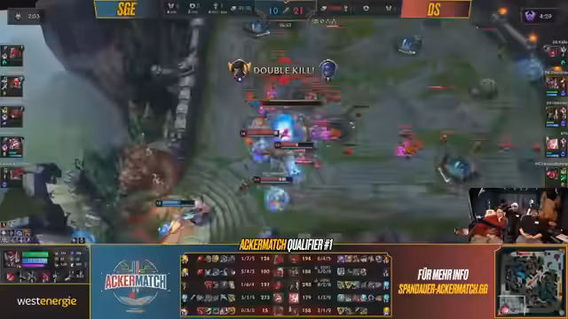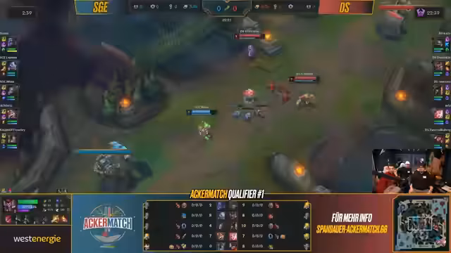 Erster Qualifier des Ackermatch-Turniers durchgeführt, bei dem Teams in League of Legends gegeneinander antraten. Die Veranstaltung umfasste mehrere Matches zwischen verschiedenen Teams. Dabei konnten Punkte gesammelt werden, die später über die Qualifikation für das Finale gegen Eintracht Spandau entscheiden. Der Wettkampf zeugte von unterschiedlichen Strategien und Champion-Picks, die taktische Tiefe des Spiels verdeutlichten.