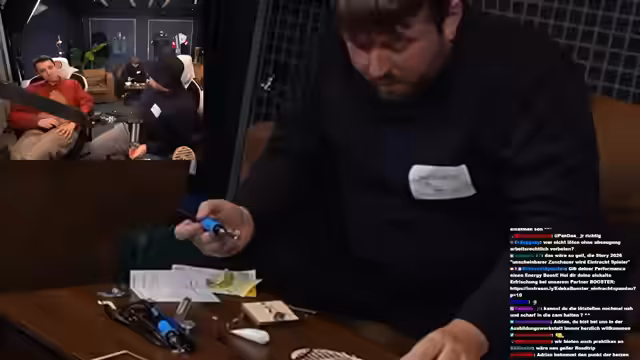 04:09:08Das technische Setup des Streams umfasste Sicherheitsvorkehrungen wie das Tragen von Helmen beim Löten und die richtige Kabelverbindung. Trotz Herausforderungen wie zu kurze Kabel gelang es dem Team, das USB-Gerät erfolgreich zu verbinden, was durch Chat-Bestätigungen validiert wurde. Dieser Prozess zeigt die Bedeutung von Präzision und Sicherheitsbewusstsein bei der Produktion von esports-Inhalten.