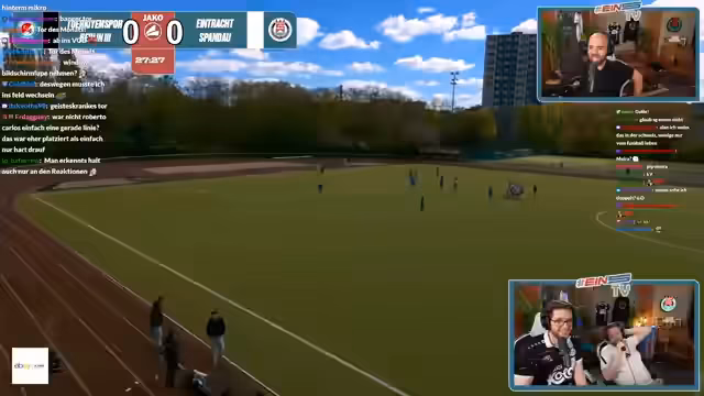 00:58:33Die Streamer schauen sich die Highlights des gestigen Spiels von Eintracht Spandau gegen Türkiyespor an. Es war ein wichtiges Spiel mit der Chance, die Tabellenführung weiter auszubauen. Das Spiel endete unentschieden und enthält umstrittene Szenen, darunter eine Handelfmeter-Situation. Es gibt technische Probleme mit der Übertragung, insbesondere mit der Auflösung und der Kameraposition. Henrik war für den Stream verantwortlich, da der Streamer zur Geburtstagsfeier seines Opas musste.