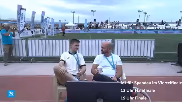 00:00:00Der Finalspieltag der TUI 25 Socca Champions League im Kleinfeld-Fußball wurde eingeleitet. Nach einem engen Elfmeterschießen qualifizierte sich Eintracht Spandau für das Achtelfinale unter den besten acht Teams weltweit, darunter Kasachen, Ungarn, Marokkaner, Polen und Deutsche. Die Atmosphäre ist hoch, mit Fokus auf die bevorstehenden Spiele gegen starke Gegner wie Polen und Marokko. Das Team setzt sich aus globalen Talenten zusammen, wobei die Konkurrenz besonders durch osteuropäische Teams geprägt ist, die im Kleinfeld-Fußball hohe Anerkennung genießen.