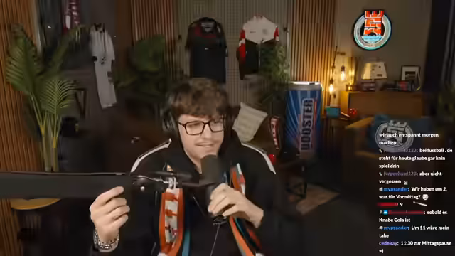 00:10:10Der Stream beginnt mit einer Vorstellung im neuen Studio. Der Streamer begrüßt seine Zuschauer nach längerer Abwesenheit und stellt humorvoll seine Veränderung vor: Er ist 15 Jahre jünger als ein Kollege, hat einen neuen Bart, kurze Haare und eine neue Brille. Er erwähne, dass neue Trikots bevorstehen und kündigt an, bei technischen Problemen selbst zu handeln, da er es gewohnt sei, Dinge alleine zu lösen. Das Studio sei neu, daher gebe es noch technische Ungereimtheiten, insbesondere bei den Lichtverhältnissen und der Bedienung der Streaming-Software.