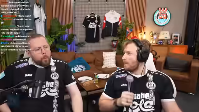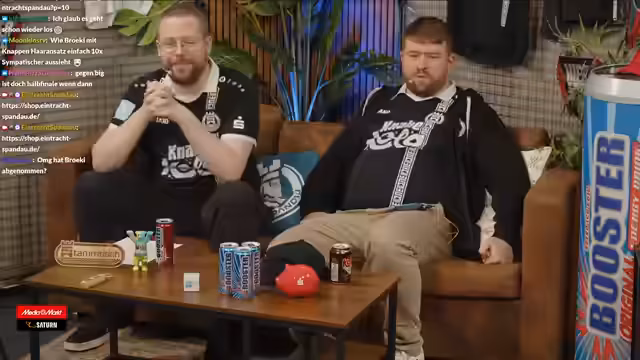 00:21:44Der Stream interagiert mit dem Chat durch ein Pyramiden-Spiel, bei dem Zuschauer bei der Auswahl der „All-Time-Champions“ des Teams mithelfen sollen. Parallel dazu wird intensiv über den offiziellen Merchandising-Shop gesprochen. Es werden Probleme mit der URL gelöst und die verschiedenen Produkte sowie mögliche Gutscheincodes vorgestellt. Dies fördert die Community-Beteiligung und unterstützt den kommerziellen Aspekt des Kanals.