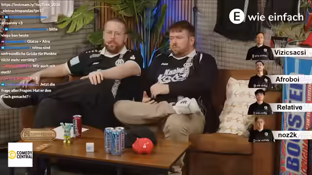 01:48:42Die Quizrunde endet mit einer Frage über den Tabellenplatz der eigenen Fußball-Herrenmannschaft in der Kreisliga C. Während die Antwort gesucht wird, wird der bevorstehende Cast-Mitglied Maxim begrüßt und das Team betont seine Vorfreude auf die anstehenden Matches. Das Stream-Format ist ein Zusammenspiel aus kompetitiver Analyse und Unterhaltung.