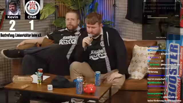 01:50:25Die Quizrunde gegen den Chat verläuft äußerst knapp. Der Streamer erwähnt eine auffällige Übereinstimmung zwischen den Antworten von Kevin und dem Chat, sobald Kevin in Führung geht. Eine spezielle Frage ist der Head-to-Head-Score gegen das Team EWI. Die Spannung steigt, als der Chat und der Streamer sich in der Antwort uneinig sind, doch letztendlich entscheidet sich der Streamer für den Sieg seiner eigenen Eintracht Spandau und gewinnt somit knapp gegen den Chat. Am Ende gibt es einen kleinen Twist bei der letzten, entscheidenden Antwort.