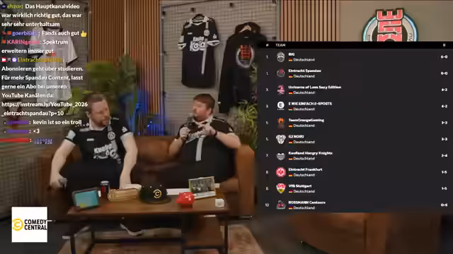 00:23:09Ein längeres Poem gegen Eintracht Spandau wurde vorgetragen, das letzte Jahre Rettung und aktuellen Status thematisierte. Ironisch wurde der Inhalt als Statement während des Spaghetti-Essens bezeichnet. Gleichzeitig wurde auf den aktuellen Zustand des Teams eingegangen - man betrachtet sich als starkes Mittelfeldteam mit großem Selbstvertrauen. Chicken Hero als Quelle für Team-Analysen wurde erwähnt, ebenso wie mögliche Strafen und Inhalte für den Stream.