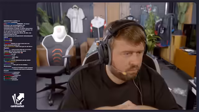 05:07:11Der Streamer fordert die Zuschauer auf, 'Card Market' in den Chat zu schreiben und kündigt an, gleich einen Kutscheincode zu ziehen. Dies ist Teil der Kooperation mit Cardmarket, um die Plattform zu bewerben. Es wird erklärt, dass Cardmarket eine zentrale Anlaufstelle für Trading-Card-Spieler ist.