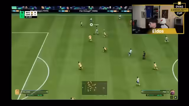 01:54:24Eldos kündigt den Start des DVAG Community Cups an, eines der größten Amateurtournaments für FIFA. Der Top64-Modus und die Preisgelder von 5000 Euro, inklusive VIP-Tickets für ein Eintracht-Frankfurt-Spiel, werden prominent vorgestellt. Ziel ist es, der Community eine Plattform zu bieten, ohne dass Profis teilnehmen dürfen, um faire Chancen für alle Teilnehmer zu gewährleisten. 800 Spieler haben sich für das Turnier registriert.