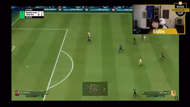 01:04:42Die Spiele im DVAG Cup werden immer spannender, insbesondere das Match zwischen Neon Engine und Pelé, dem topgesetzten Spieler, der bisher ungeschlagen war. Neon Engine führt überraschend deutlich, was die Spannung des Turniers erhöht. Es wird die Möglichkeit diskutiert, eine Webcam-Pflicht für zukünftige Turnierphasen einzuführen, um die Integrität der Spiele zu gewährleisten, insbesondere wenn der Verdacht auf eSportler besteht. Der Streamer bietet sogar an, selbst eine Webcam zu schicken, falls dies notwendig wird. Das Turnier wird als das größte der Welt bezeichnet, da selbst bei größeren Offline-Events wie in Atlanta nicht so hohe Preisgelder vergeben wurden. Die Nervosität der Spieler, insbesondere des topgesetzten Pelé, ist spürbar, da der Druck des Ausscheidens groß ist. Die Diskussionen über In-Game-Mechaniken, wie das Torwart-Movement und die Effektivität von Finesse-Schüssen, werden fortgesetzt, da diese einen großen Einfluss auf den Spielverlauf haben.