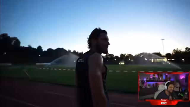 00:39:33Die Szene wechselt zu einem Live-Training, an dem Probespieler teilnehmen. Der Streamer übernimmt hier die Rolle des Coaches und leitet ein intensives Intervalltraining mit mehreren Läufen über jeweils 800 Meter. Die Laufzeiten sind vorgegeben und die Spieler sollen sich als Team unterstützen. Der Streamer motiviert die Spieler und gibt ihnen Tipps zur Durchführung. Er selbst zeigt sich topfit und nimmt an der Trainingseinheit teil. In den Pausen spricht er mit den Spielern über die Wichtigkeit der Fitness für den Fußball und erwähnt, dass jeder Spieler in der Bezirksliga-Mannschaft ein Gehalt von 7.000 Euro netto erhält.