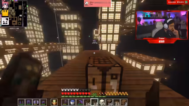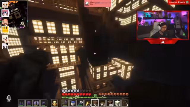01:33:35Die Arbeiten am Infinity Castle im Minecraft-Server stehen im Mittelpunkt. Der Streamer zeigt Vergleiche zwischen dem originalen Infinity Castle aus *Demon Slayer* und der aktuellen Baustelle. Es wird diskutiert, dass eine 1:1-Nachbildung aufgrund von Platz- und Realisierungsproblemen nicht möglich ist. Stattdessen werden die Farben und die optische Wirkung im Vordergrund gestellt. Das Team arbeitet daran, durch Brücken, Verbindungen und Treppenelemente die gewünschte Tiefe und Komplexität zu erzeugen, die dem Original nahekommen, ohne es komplett zu kopieren.