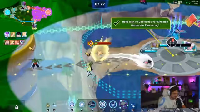 01:10:46Es beginnt eine Runde des Dragon Ball Games. Es wird ein Team zusammengestellt, wobei der Streamer sich als dritter Spieler in ein Team einreiht. Die Teamfindung erfolgt über ein Freundes-Symbol und die Eingabe eines Codes aus dem privaten Chat. Das Spiel wird als kostenlos hervorgehoben und für Dragon Ball Fans empfohlen. Nach der Teambildung wird ein Kampf gestartet, bei dem man zwischen verschiedenen Rollen wie Angreifer, Verteidiger und Unterstützer wählen kann. Der Streamer wählt Vegeta als Verteidiger, während andere Teammitglieder Goku als Angreifer wählen. Das Spielprinzip wird mit anderen Genre-Vertretern verglichen. Es wird über die Lane-Wahl diskutiert und auf die fertigen Kappelpijamas von Leora hingewiesen, die in der Streamingwoche getestet werden sollen. Diese sollen bequem zum Zocken und Schlafen sein. Der Streamer entscheidet sich, nach oben zu gehen, während ein anderer Mitspieler unten bleibt. Durch das Besiegen von Bots kann man leveln und seinen Turm verteidigen. Es wird das 'Last-Hitten' Prinzip angewendet, ähnlich wie in League of Legends.