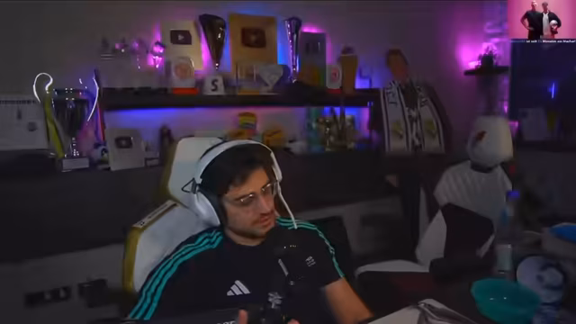 00:01:23Der Stream beginnt mit musikalischen Themen, die Rap-Lyrics beinhalten, unter anderem Zeilen wie 'Ich will reich sein, Minimum scheich' und 'Send me location, wir fixen das Mieter'. Kurz darauf treten massive technische Probleme auf. Der Streamer meldet, dass sein Ton nicht funktioniert, was sich später jedoch von selbst behebt. Die Verzögerung wird auf das Umschalten der Audioquelle zurückgeführt.