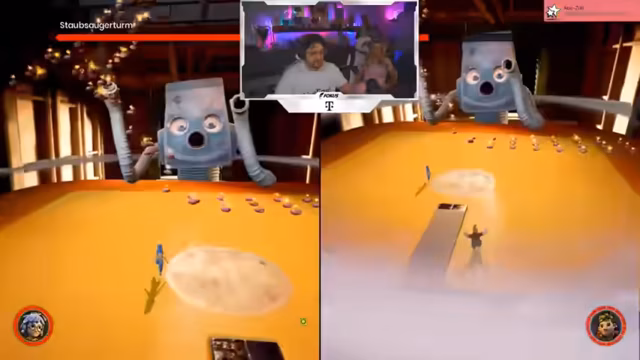 02:57:02Der Stream verläuft von anhaltenden Herausforderungen im Gameplay geprägt. Melina, die weniger Erfahrung mit Konsolen Spielen hat, hat Schwierigkeiten mit der Steuerung, insbesondere mit der Kamerasteuerung und den Sprungmechaniken. Der Streamer gibt ihr ununterbrochen Ratschläge und Anweisungen, um durch die Level zu navigieren. Sie stoßen auf verschiedene Rätsel und Bosskämpfe, die eine perfekte Koordination erfordern. Mehrfach sterben beide Charaktere, was einen Neustart der jeweiligen Abschnitte notwendig macht und den Prozess langsamer vorantreibt.