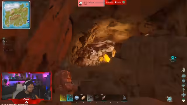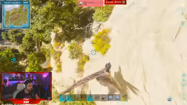 04:26:37Zu Beginn des Streamsegments befindet sich der Streamer in einer Wasserhöhle, wo er auf der Suche nach bestimmten Dinos wie einem Doody und einem Basilo ist. Gemeinsam mit dem Chat wird die Funktionsweise von Dino-Boxen erklärt, in die Tiere wie der Axel und das Megatherium gepackt werden können, ohne sie zu verlieren. Es werden Strategien für die Höhlen-Exploration besprochen, einschließlich der Nutzung von Enterhaken und der Frage nach legitimen Farm-Methoden im Gegensatz zu fragwürdigen Taktiken.