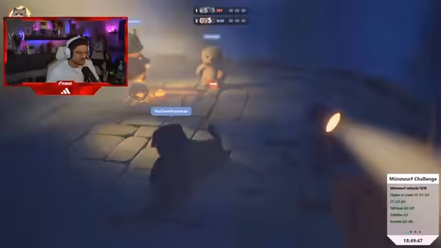 16:36:40Nach der erfolgreichen Geisterserie wechseln die Streamer zu einem anderen Spiel: Die Münzwurf Challenge. Hierbei muss erraten werden, ob eine Münze auf 'Kopf' oder 'Zahl' landet. Die Herausforderung ist spannend und unterhaltsam, wobei die Streamer humorvoll miteinander interagieren und manchmal übertrieben emotional auf das Ergebnis reagieren. Nach mehreren Runden entscheiden sie sich, das Spiel gegen einen Gegner namens Igar fortzusetzen, wobei es um die schnelle Erkennung von Standorten basierend auf Hinweisen geht. Die Spannung steigt, da sie versuchen, den Gegner zu schlagen und dabei viel Spaß haben.