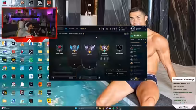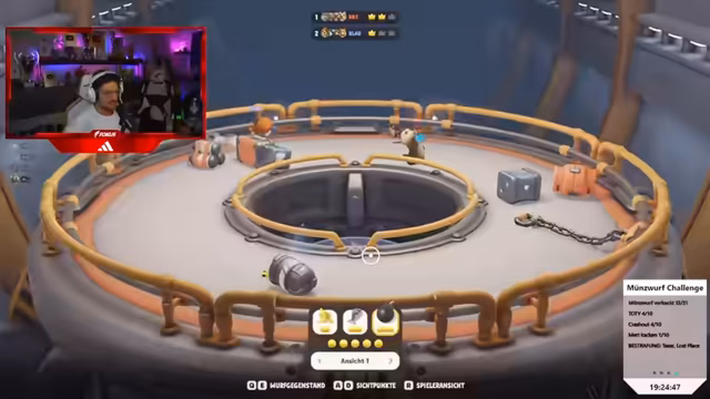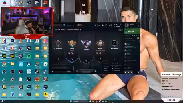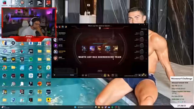 11:32:10Die Streamer organisieren ihre Teams für die Münzwurf-Challenge, wobei Vatial als Coach in den Chat eintritt und um eine Einladung gebeten wird. Es kommt zu Konflikten bei der Teamzusammenstellung, da einige Teilnehmer sich gegenseitig blockieren und technische Schwierigkeiten beim Beitritt zu den Games auftreten. Die Dynamik zwischen den Teilnehmern ist angespannt, mit wiederholten Aufforderungen, sich auf den Fokus zu legen und das Spiel ernst zu nehmen.