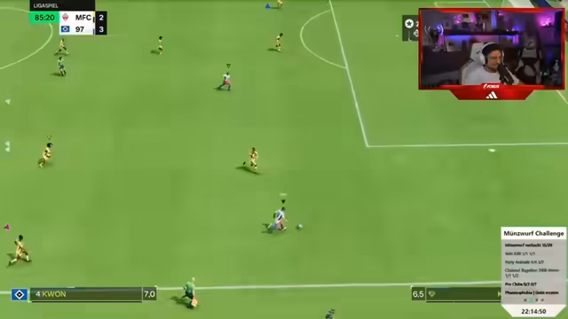 08:48:37Während des Spiels wird ein Quiz mit verschiedenen Wissensfragen durchgeführt, von Film bis Fußball. Gleichzeitig kommt es zu weiteren Spielproblemen, bei denen der Streamer über Gameplay beschwert und seine Verärgerung über verpaste Chancen äußert. Die Gruppe diskutiert über Spielercharakteristika und Fehler in der Spielführung, während sie gleichzeitig durch Quizfragen abgelenkt wird. Es zeigt sich, wie das Spiel und die Unterhaltung parallel nebeneinanderlaufen.