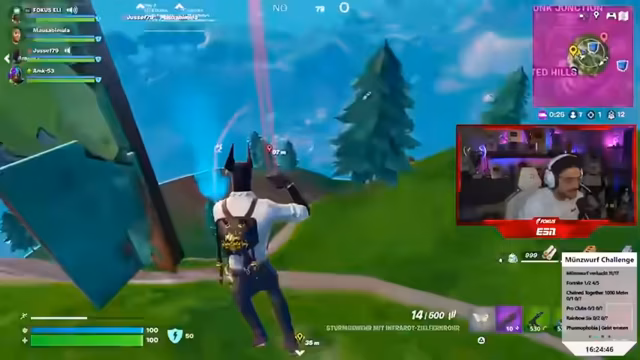00:18:00Das Team beginnt mit Fortnite-Spielen und面临 mehrere Herausforderungen, darangeden Gegnern, Technikerproblemen und der Komplexität des Spiels. Elias ärgert sich über Streamsnapper und unerfahrene Gegner. Das Team arbeitet zusammen, um Loot zu sammeln und strategische Positionen einzunehmen.