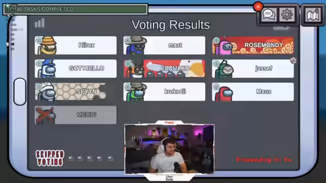 03:22:59Ein Spieler namens Medi wird in der Cafeteria ermordet. Der Streamer verteidigt zunächst Josef, da dieser im Shapeshift-Modus möglicherweise nicht den Kill wahrgenommen hat. Die Suche nach der Leiche beginnt und es wird über die Täter spekuliert. Es folgt eine heftige Diskussion und ein Vote, bei dem Danny zum Votum ansteht. Der Streamer, der selbst für Danny votet, argumentiert, dass Micky aus Trotz handelt, und dass es objektive Beweise gebe, die Danny entlasten.