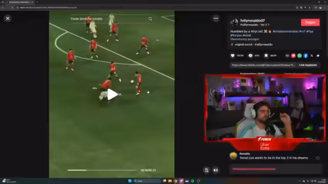 02:58:24Der Streamer kritisiert eine Spielerfigur, die er als „Rotzbengel“ bezeichnet. Anschließend wird eine tiefe Analyse zu Ronaldo und Messi gegeben. Er betont, dass man 15 lang dominieren müsse, um als Goat bezeichnet werden zu können. Er stellt klar, dass Messi Weltmeister wurde, und wehrt sich gegen den sogenannten „PR-Bengel“ Crazy Victor, der nach einem 1:1-Spiel ein „King“-Bild postete. Der Streamer bewertet dies als falsche Einstellung.