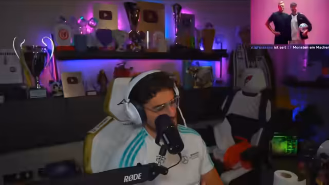 03:03:20Der Streamer äußert sich zu seinem Verhältnis zu Real Madrid und betont, dass ihm die Ergebnisse des Vereins aktuell egal sind. Im Gespräch mit dem Chat diskutiert er über das Verhalten, nach einem Tor ein Bild zu posten, was er als komisch empfindet. Anschließend kommt die Sprache auf eine Liste von Vereinen, darunter Bayern, Real, HSV und Hertha, wobei er als deutscher Verein die Bayern bevorzugen würde, Real aber wegen der Ronaldo-Ära Respekt zollt. Diese ganze Diskussion bezeichnet er jedoch als geschmacksneutral und zieht einen Vergleich zu 'Farlim', einem Kaugummi, der keinen Geschmack habe, aber dennoch einer der geilsten Kaugummis gewesen sei.