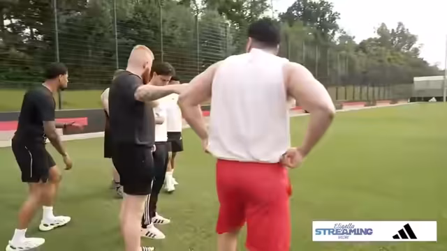 01:58:37Nachdem die ersten Gäste eingetroffen sind und der Streamer sich umgezogen hat, beginnt das gemeinsame Training. Es wird deutlich, dass hier professionelle Athleten zu sehen sind, die eine beeindruckende physische Präsenz zeigen. Parallel werden Pläne für den Rest des Tages geschmiedet, darunter der weitere Verlauf des Streams, eine mögliche Teilnahme von Markus am Donnerstag, das Öffnen von Zuschauerpaketen und das Pflanzen eines Magnolienbaums als Symbol für die Streaming-Woche.