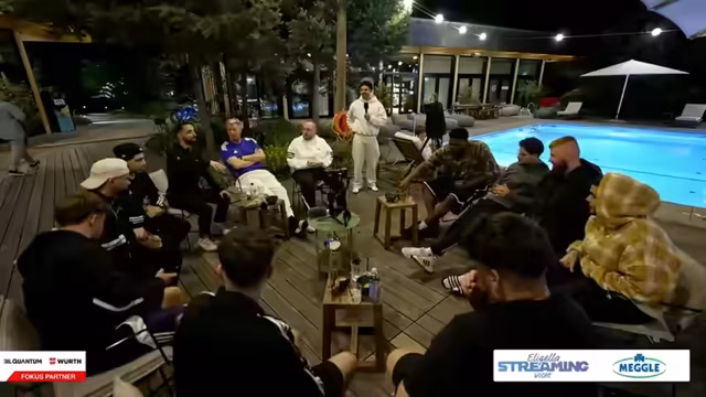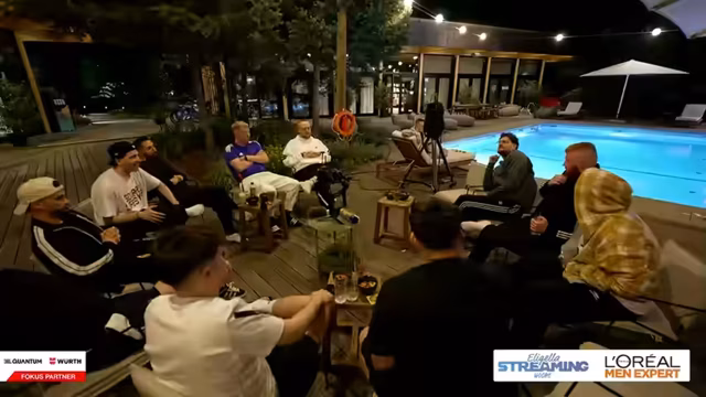 02:26:48Nach der Ankündigung der Aktivitäten steigen einige Teilnehmer, darunter Elias und Zabex, ins Wasser. Während des Aufenthalts im Pool geht Elias' E-Zigarette und sein Smartphone verloren. Dies führt zu einem humorvollen, aber nervösen Austausch, bei dem Elias im Pool taucht, um seine Gegenstände wiederzuerlangen, was aber erfolg bleibt. Später wird die Geräte gefunden, was zur allgemeinen Erleichterung führt. Dieses Ereignis lockert die Stimmung auf und zeigt den locker, chaotischen Umgang miteinander unter den Teilnehmern.