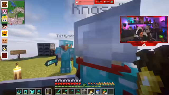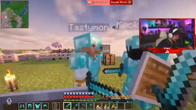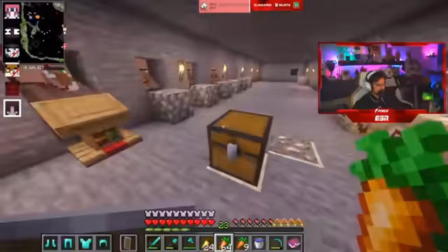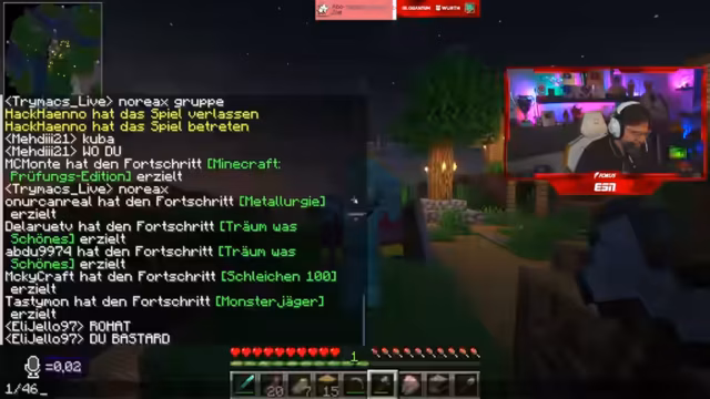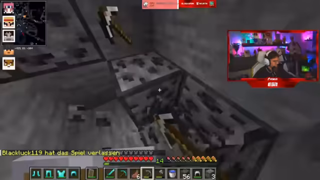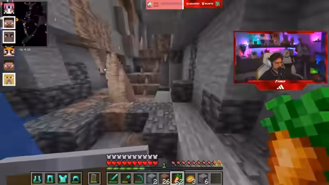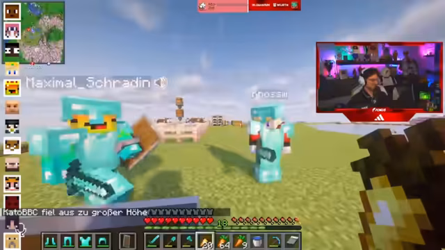 08:31:22Die Kernaktivität des Streams ist das kooperative Spielen im Spiel FitnaCraft. Die Teilnehmer sammeln dringend benötigte Ressourcen wie Gold und Holz. Sie organisieren sich, um gemeinsame Ziele zu erreichen, wie den Bau von TNT-Farmen. Das Teamwork wird durch das gemeinsame Handeln und den Austausch von Gegenständen wie goldenen Karotten als Nahrung verstärkt. Die Jagd nach seltenen Ressourcen und die gemeinsame Bewältigung von Aufgaben stehen im Mittelpunkt des Spiels.
