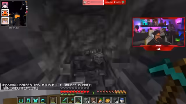 04:11:06Der Streamer gibt Anweisungen, wie man effektiv nach Höhlen suchen kann, indem man in den Tiefen von minus 30 bis minus 40 Blöcken sucht. Er und seine Mitspieler bauen an mehreren Projekten, darunter einem zweiten Villagen-Züchter als Backup und einem Villager-Handelssystem für seltene Verzauberungen wie Mending. Ein Hauptproblem ist der Mangel an Smaragden, weshalb viel Fichtenholz gesammelt werden muss, was jedoch zeitaufwendig ist.