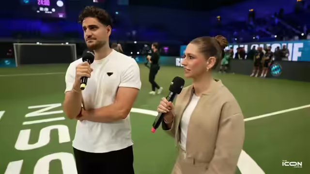 00:09:16Die Icon League feiert ihre Premiere in Hamburg mit einem ausverkauften Haus. Der Streamer begrüßt die Zuschauer und freut sich über die zahlreichen Besucher. Es werden sieben Spiele angekündigt, darunter City gegen Bürgeramt, Players gegen The Pack und weitere spannende Begegnungen. Ein kurzer Rückblick auf den ersten Matchday der Saison wird gegeben, wobei betont wird, dass das spielerische Niveau hoch war, obwohl einige Spieler aufgrund anderer Verpflichtungen fehlten. Für den aktuellen Spieltag werden einige Specials vorbereitet, darunter der Besuch von acht HSV-Spielern und dem Trainer. Zudem wird es Musik-Acts und Gewinnspiele für die Zuschauer im Stream und in der Halle geben, bei denen unter anderem eine PS5, Final-Tickets und ein Lego-Set verlost werden. Der Streamer bedankt sich bei allen Zuschauern und freut sich auf einen tollen Spieltag. Es wird ein Premierenteam vorgestellt, Find the Pro Icons, und es wird erwartet, dass sie es schwer haben werden, sich in der Liga zu etablieren. Luka Jovic wird ebenfalls anwesend sein.